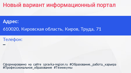 Новый вариант, информационный портал по адресу 610020, Кировская область, Киров, Труда, 71 в дальнейшем Организация, размещена в следующих категориях: