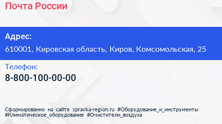 Почта России по адресу 610001, Кировская область, Киров, Комсомольская, 25 в дальнейшем Организация, размещена в следующих категориях: