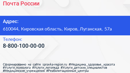 Почта России по адресу 610044, Кировская область, Киров, Луганская, 57а в дальнейшем Организация, размещена в следующих категориях: