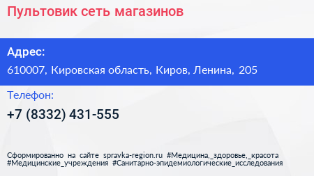 Пультовик, сеть магазинов по адресу 610007, Кировская область, Киров, Ленина, 205 в дальнейшем Организация, размещена в следующих категориях: