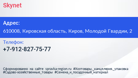 Skynet по адресу 610008, Кировская область, Киров, Молодой Гвардии, 2 в дальнейшем Организация, размещена в следующих категориях: