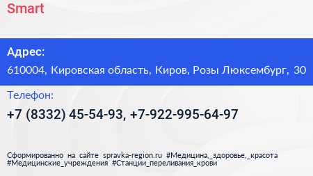Smart по адресу 610004, Кировская область, Киров, Розы Люксембург, 30 в дальнейшем Организация, размещена в следующих категориях: