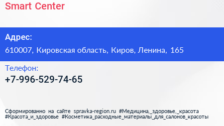 Smart Center по адресу 610007, Кировская область, Киров, Ленина, 165 в дальнейшем Организация, размещена в следующих категориях: