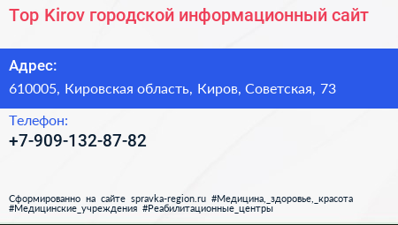 Top-Kirov, городской информационный сайт по адресу 610005, Кировская область, Киров, Советская, 73 в дальнейшем Организация, размещена в следующих категориях: