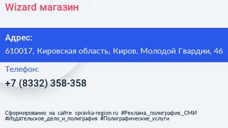 Wizard, магазин по адресу 610017, Кировская область, Киров, Молодой Гвардии, 46 в дальнейшем Организация, размещена в следующих категориях: