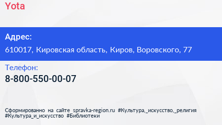 Yota по адресу 610017, Кировская область, Киров, Воровского, 77 в дальнейшем Организация, размещена в следующих категориях: