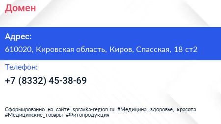 Домен по адресу 610020, Кировская область, Киров, Спасская, 18 ст2 в дальнейшем Организация, размещена в следующих категориях:
