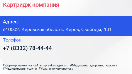 Картридж, компания по адресу 610002, Кировская область, Киров, Свободы, 131 в дальнейшем Организация, размещена в следующих категориях:
