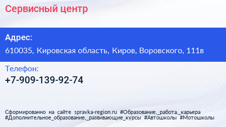Сервисный центр по адресу 610035, Кировская область, Киров, Воровского, 111в в дальнейшем Организация, размещена в следующих категориях: