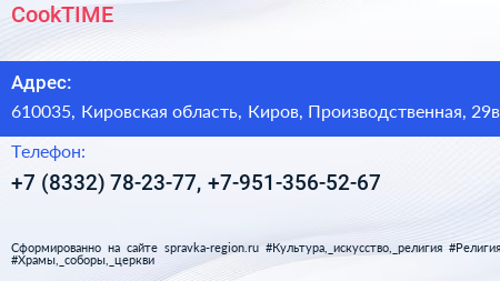CookTIME по адресу 610035, Кировская область, Киров, Производственная, 29в в дальнейшем Организация, размещена в следующих категориях: