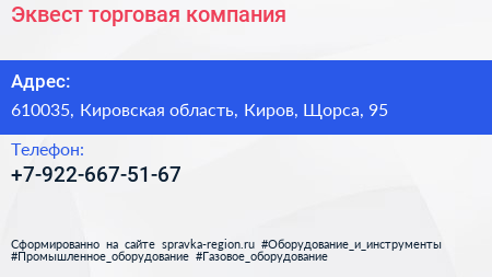 Эквест, торговая компания по адресу 610035, Кировская область, Киров, Щорса, 95 в дальнейшем Организация, размещена в следующих категориях: