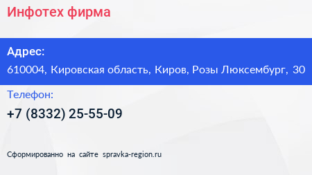 Инфотех, фирма по адресу 610004, Кировская область, Киров, Розы Люксембург, 30 в дальнейшем Организация, размещена в следующих категориях: