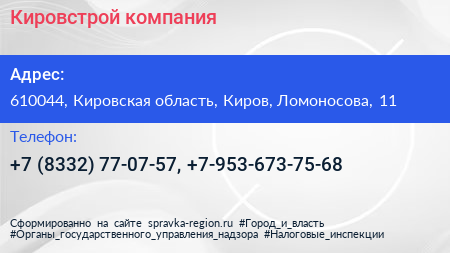 Кировстрой, компания по адресу 610044, Кировская область, Киров, Ломоносова, 11 в дальнейшем Организация, размещена в следующих категориях: