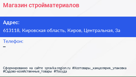 Магазин стройматериалов по адресу 613118, Кировская область, Киров, Центральная, 3а в дальнейшем Организация, размещена в следующих категориях: