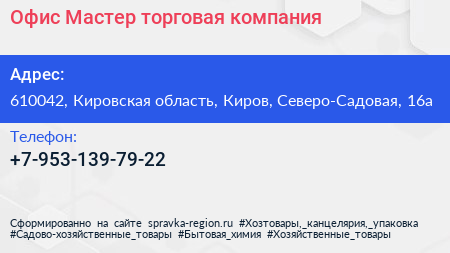 Офис-Мастер, торговая компания по адресу 610042, Кировская область, Киров, Северо-Садовая, 16а в дальнейшем Организация, размещена в следующих категориях: