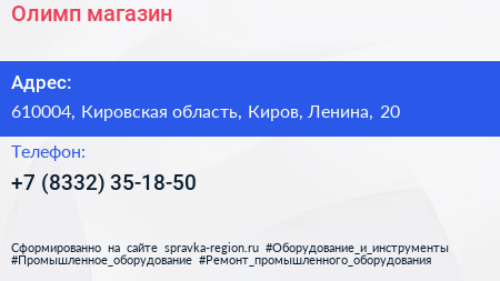 Олимп, магазин по адресу 610004, Кировская область, Киров, Ленина, 20 в дальнейшем Организация, размещена в следующих категориях: