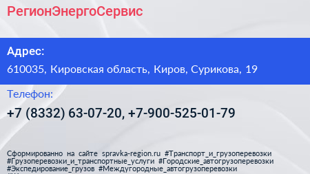 РегионЭнергоСервис по адресу 610035, Кировская область, Киров, Сурикова, 19 в дальнейшем Организация, размещена в следующих категориях: