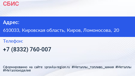 СБИС по адресу 610033, Кировская область, Киров, Ломоносова, 20 в дальнейшем Организация, размещена в следующих категориях: