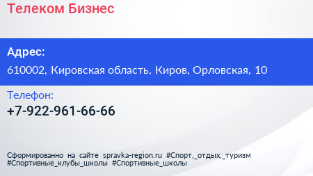 Телеком Бизнес по адресу 610002, Кировская область, Киров, Орловская, 10 в дальнейшем Организация, размещена в следующих категориях: