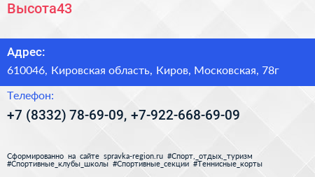 Высота43 по адресу 610046, Кировская область, Киров, Московская, 78г в дальнейшем Организация, размещена в следующих категориях: