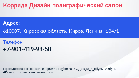Коррида Дизайн, полиграфический салон по адресу 610007, Кировская область, Киров, Ленина, 184/1 в дальнейшем Организация, размещена в следующих категориях: