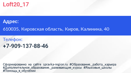 Loft20_17 по адресу 610035, Кировская область, Киров, Калинина, 40 в дальнейшем Организация, размещена в следующих категориях: