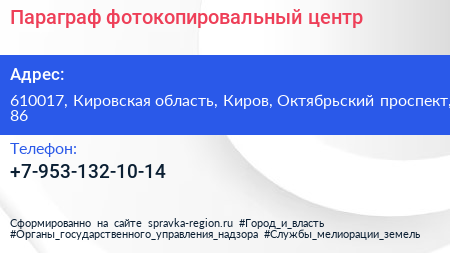 Параграф, фотокопировальный центр по адресу 610017, Кировская область, Киров, Октябрьский проспект, 86 в дальнейшем Организация, размещена в следующих категориях: