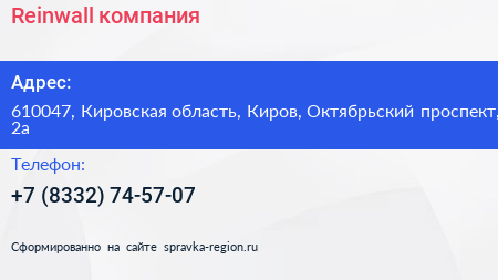 Reinwall, компания по адресу 610047, Кировская область, Киров, Октябрьский проспект, 2а в дальнейшем Организация, размещена в следующих категориях:
