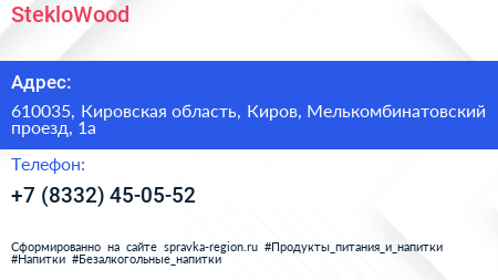 StekloWood по адресу 610035, Кировская область, Киров, Мелькомбинатовский проезд, 1а в дальнейшем Организация, размещена в следующих категориях: