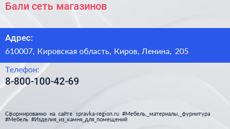 Бали, сеть магазинов по адресу 610007, Кировская область, Киров, Ленина, 205 в дальнейшем Организация, размещена в следующих категориях: