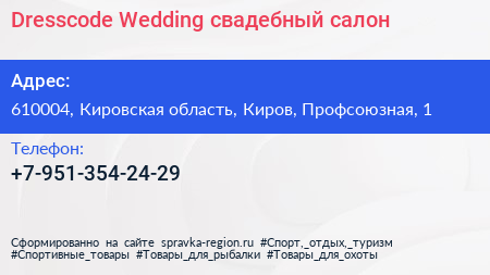 Dresscode Wedding, свадебный салон по адресу 610004, Кировская область, Киров, Профсоюзная, 1 в дальнейшем Организация, размещена в следующих категориях: