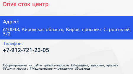 Drive, сток-центр по адресу 610048, Кировская область, Киров, проспект Строителей, 5/2 в дальнейшем Организация, размещена в следующих категориях: