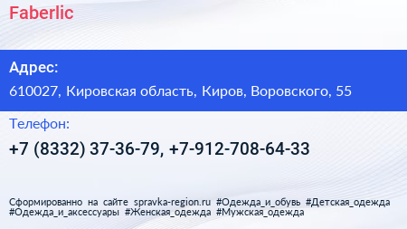 Faberlic по адресу 610027, Кировская область, Киров, Воровского, 55 в дальнейшем Организация, размещена в следующих категориях: