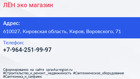 ЛЁН, эко-магазин по адресу 610027, Кировская область, Киров, Воровского, 71 в дальнейшем Организация, размещена в следующих категориях: