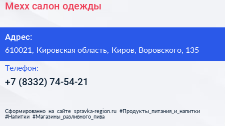 Mexx, салон одежды по адресу 610021, Кировская область, Киров, Воровского, 135 в дальнейшем Организация, размещена в следующих категориях: