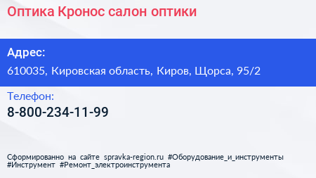 Оптика Кронос, салон оптики по адресу 610035, Кировская область, Киров, Щорса, 95/2 в дальнейшем Организация, размещена в следующих категориях: