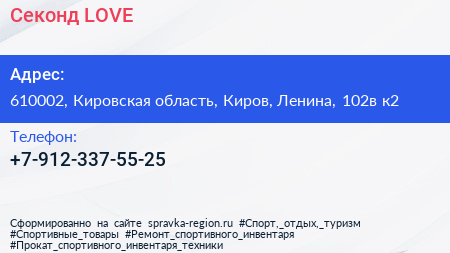 Секонд LOVE по адресу 610002, Кировская область, Киров, Ленина, 102в к2 в дальнейшем Организация, размещена в следующих категориях: