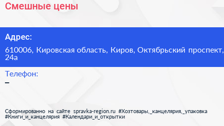 Смешные цены по адресу 610006, Кировская область, Киров, Октябрьский проспект, 24а в дальнейшем Организация, размещена в следующих категориях: