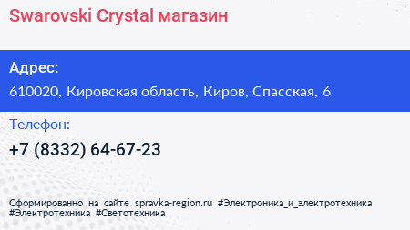 Swarovski Crystal, магазин по адресу 610020, Кировская область, Киров, Спасская, 6 в дальнейшем Организация, размещена в следующих категориях: