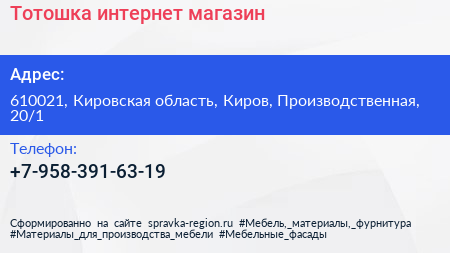 Тотошка, интернет-магазин по адресу 610021, Кировская область, Киров, Производственная, 20/1 в дальнейшем Организация, размещена в следующих категориях: