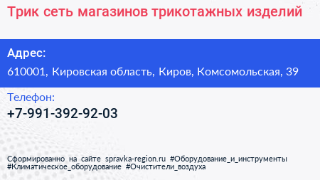 Трик, сеть магазинов трикотажных изделий по адресу 610001, Кировская область, Киров, Комсомольская, 39 в дальнейшем Организация, размещена в следующих категориях: