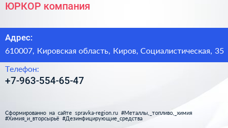 ЮРКОР, компания по адресу 610007, Кировская область, Киров, Социалистическая, 35 в дальнейшем Организация, размещена в следующих категориях: