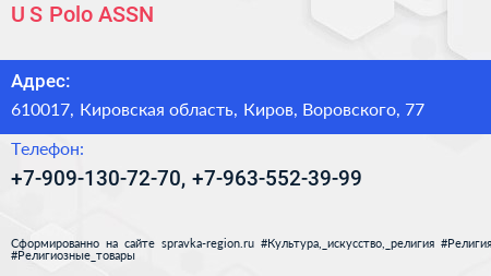 U.S. Polo ASSN. по адресу 610017, Кировская область, Киров, Воровского, 77 в дальнейшем Организация, размещена в следующих категориях: