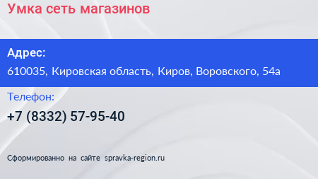 Умка, сеть магазинов по адресу 610035, Кировская область, Киров, Воровского, 54а в дальнейшем Организация, размещена в следующих категориях: