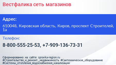 Вестфалика, сеть магазинов по адресу 610048, Кировская область, Киров, проспект Строителей, 1а в дальнейшем Организация, размещена в следующих категориях: