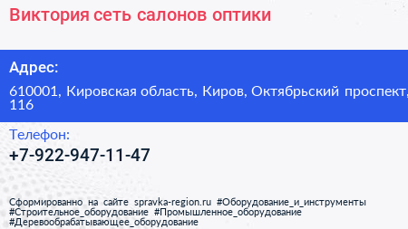 Виктория, сеть салонов оптики по адресу 610001, Кировская область, Киров, Октябрьский проспект, 116 в дальнейшем Организация, размещена в следующих категориях: