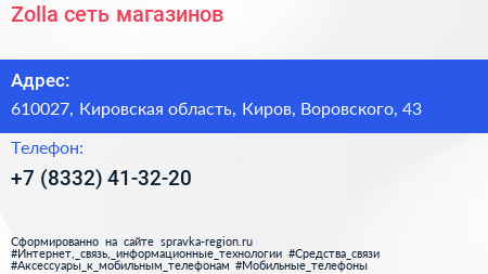 Zolla, сеть магазинов по адресу 610027, Кировская область, Киров, Воровского, 43 в дальнейшем Организация, размещена в следующих категориях: