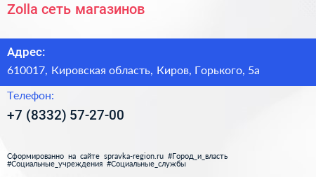 Zolla, сеть магазинов по адресу 610017, Кировская область, Киров, Горького, 5а в дальнейшем Организация, размещена в следующих категориях: