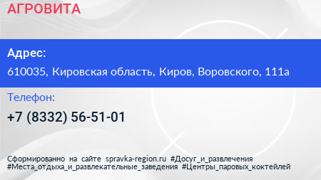 АГРОВИТА по адресу 610035, Кировская область, Киров, Воровского, 111а в дальнейшем Организация, размещена в следующих категориях: