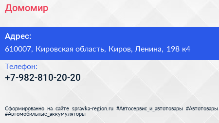 Домомир по адресу 610007, Кировская область, Киров, Ленина, 198 к4 в дальнейшем Организация, размещена в следующих категориях: